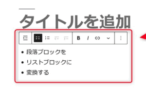 箇条書きを作るリストブロックの基本的な使い方 リストの階層の設定とリスト内の色の設定方法 リストブロックは階層を持たせることもできます。 項目を追加した後に、ブロックツールバーから「リスト項目をインデント」をクリックする […]